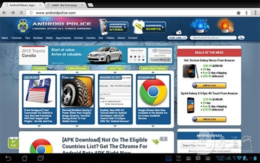 由于在上面的手机版Chrome for Android介绍中,我们已经了解了这款浏览器绝大多数的功能特色,因此Pad版的介绍我们主要集中在两个版本的区别上面。