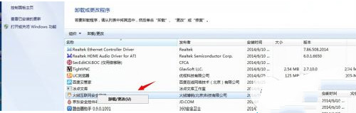 2.进入卸载和更改程序下找到【火绒互联网安全软件】点击右键选择【卸载/更改】