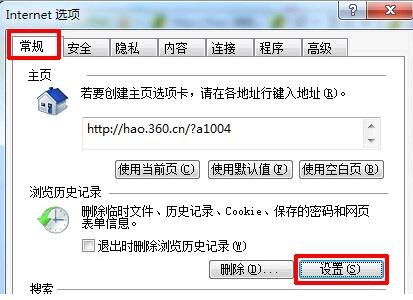 1.在IE浏览器中的工具栏中,打开Internet选项,在其中的常规选项中的“浏览历史记录”中的“设置”里,修改使用的磁盘空间。