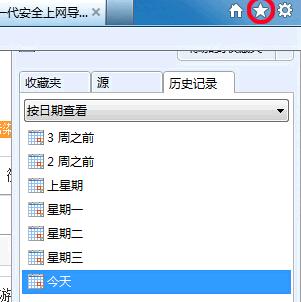 2.单击快捷工具条中的“历史”,然后打开IE的“历史记录”。