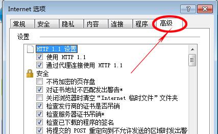 2.在“Internet选项”中点击“高级”选项卡。