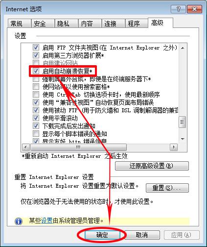 设置完成后重启IE浏览器,之后当IE浏览器崩溃后也可恢复到崩溃前所浏览的网页了。