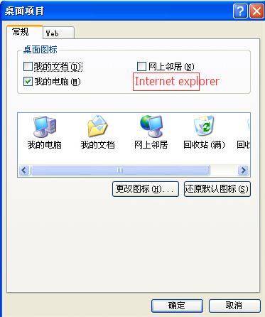 一般的系统里面会有红色框框里面的选项,只要勾上,然后点击确定,你的IE就重回你的桌面啦,如果像小编这个系统的话,请参照第一种方法将IE放入桌面。