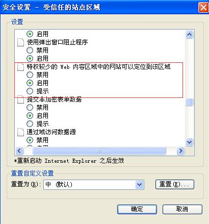 再打开的选项卡里,选择启用“特权较少的Web内容区域中的网站可以定位到该区域选项”,就能解决打开网站总弹出的这些警告。