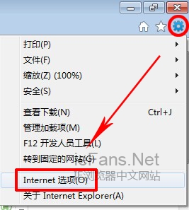 1.在IE浏览器中找到“工具”,点击打开,找到“Internet选项”