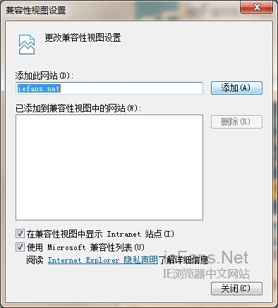2. 将该行网站添加到“兼容性视图中的网站”,关闭IE,重新登入。