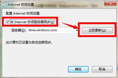 然后勾选“与Internet时间服务器同步”,然后点击立即更新按钮,最后确定。