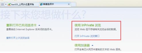 以IE8为例,打开浏览器,新建一个选项卡,点击使用InPrivate浏览,如图: