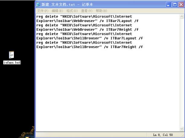 2、假如上面的方法还是不能解决问题的话。将下面的内容重命名保存为iefans.bat的文件,然后双击运行它,然后再试试可否隐藏IE11的菜单栏。