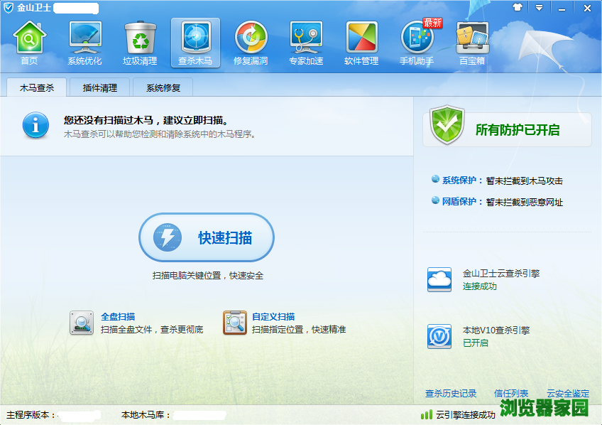 金山卫士是一款由金山网络技术有限公司出品的查杀木马能力强、检测漏洞快、体积小巧的免费安全软件。它采用金山领先的云安全技术,不仅能查杀上亿已知木马,还能5分钟内发现新木马;漏洞检测针对windows7优化,速度更快;更有实时保护、插件清理、修复IE等功能,全面保护电脑的系统安全。