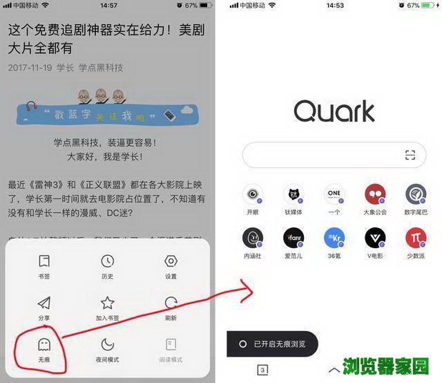 「夸克」的无痕浏览功能,可以帮助你保护上网隐私,开启后你所访问的网页和搜索记录都不会保存下来。