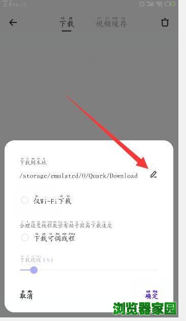 在弹出的设置路径点击修改,这是我们可以看到夸克浏览器默认下载路径位置,把路径记下来,然后在手机文件里面找到路径。