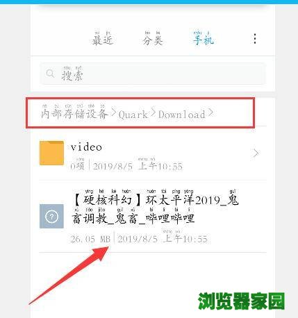 夸克浏览器缓存的视频文件位置: