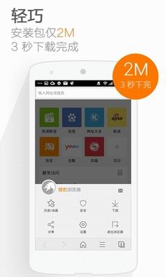 ★★★猎豹手机浏览器★★★视频离线下载0流量看片;百万影视剧综艺节目随时追;Flash等百种格式万能视频播放;安装包2M 下载仅需3秒;0秒启动,网页浏览提速100%。