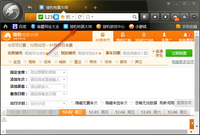 猎豹浏览器抢票专版使用方法
