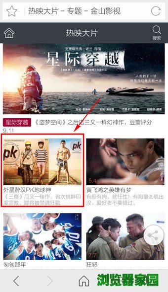 1.打开猎豹手机浏览器,滑动找到【热门影视】