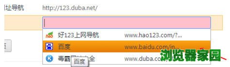 第六步:然后直接打上百度或者在下面提供的当中选择百度。
