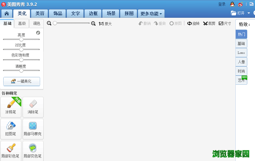 其中美化图片只有马赛克、边框、文字、特效、背景虚化、增强和编辑等功能;