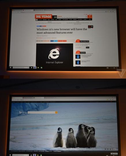 如之前传言,采用全新内核的Spartan界面UI十分简洁,和Chrome有几分类似,卡片式的体验相对IE有较大进步。在使用过程中,用户可直接在页 面上做标记进行备注,另外做页面笔记的方式不再局限于触屏或触摸笔,做完笔记后可直接进行分享或者保存至OneNote。