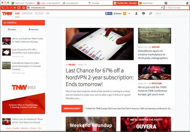 我曾在Vivaldi正式发布前试用了几天,它是一款风格简洁明快、酷似Opera的浏览器。当你切换网站时,浏览器界面的色彩会发生轻微的淡化,以便与页面上的主要色彩相匹配。我认为这对某些用户来说会很有用,尤其是“快速命令”功能,它能够让你像使用OS X的Spotlight一样搜索或运行命令。