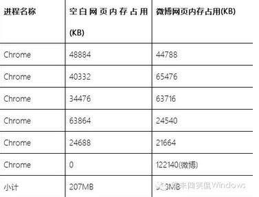 为了公平起见,这里对空白网页的两个浏览器的内存占用进行比较,同时再比较启动新浪微博时的内存占用。