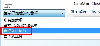 4.在右边可以显示出未经许可运行的插件,鼠标移动到需要禁用的插件名上单击鼠标右键,选择“禁用”。