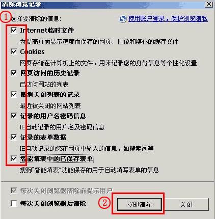 IE6.0 工具——Internet选项——删除Cookies、删除文件(勾选删除脱机文件)