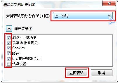 选择要删除的内容,选择历史记录的时间,单击“立即清除”即可。