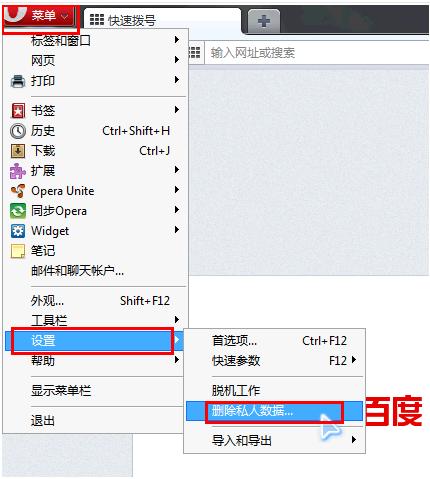工具栏 菜单-------设置--------删除私人数据