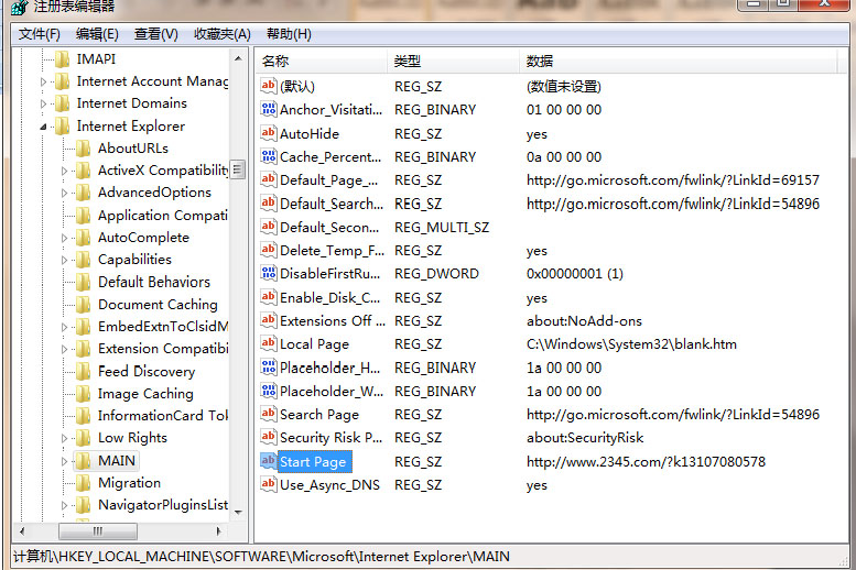 HKEY_LOCAL_MACHINE\SOFTWARE\Microsoft\Internet Explorer\Main下,在右半部分窗口中找到串值“Start Page”双击 ,将Start Page的键值改为“你想要的主页”即可;