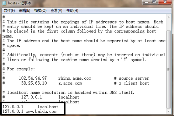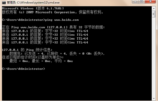 从这里我们可以看出来,百度网站解析出来的IP地址是127.0.0.1