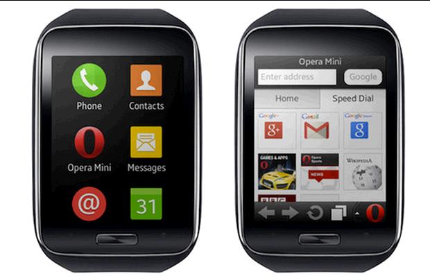 三星的 Gear S 智能腕上设备(这么称呼实在是因为它不像现在单纯作为外设的大多数智能手表,它具备独立的手机功能)搭载 Tizen 智能系统,使用一块对角线为 2 英寸的触摸屏幕。根据 Opera 发言人的描述,他们认为 Opera Mini 作为一款起始于八年前的浏览器,回到 2 英寸屏幕(和当时主流手机屏幕尺寸接近)设备上并不奇怪。何况现如今哪怕是智能手表的计算力也远胜于当时的功能手机。