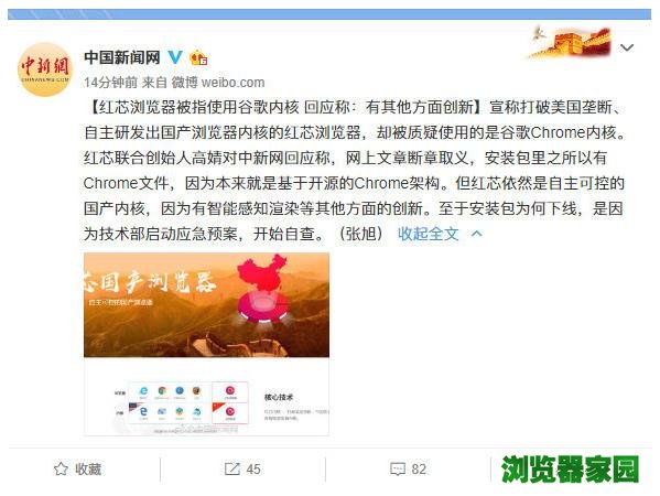 红芯浏览器造假风波:红芯回应称没有拿过国家的钱