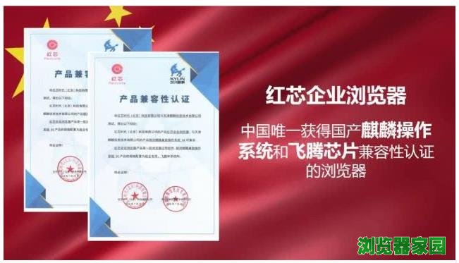 并称作为中国第一个兼容“飞腾”国产芯片和“银河麒麟”国产操作系统的浏览器,目前,红芯浏览器已获得麒麟公司的兼容认证。