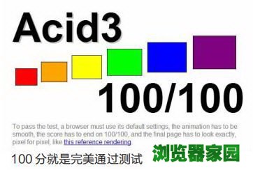 测试方案:Acid3是一个测试网页兼容性的标准,它测试焦点集中在ECMA、DOM Level 3、Media Queries等,是目前Web基准测试中最严格的。本轮测试我们使用的是专业测试网站Acid3,网址是http://acid3.acidtests.org,测试总分为100分,如果未通过测试左上角有红色字显示,得分越高浏览器的兼容性就越好。