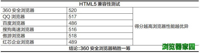 结果分析:6款参测浏览器得分最高的是520分的360安全浏览器,其次是518分的傲游浏览器、517分的QQ浏览器和516分的搜狗高速浏览器,516~518分值相差太小,因此我们可以说本轮测试360安全浏览器稍胜一筹,傲游浏览器、QQ浏览器和搜狗高速浏览器紧随其后,而百度浏览器和红芯企业浏览器跟上述四款浏览器相差较大,还需进一步优化对HTML5的兼容性。