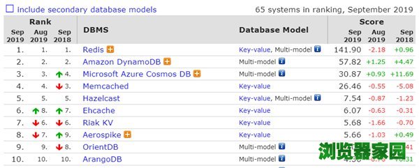 有关其他方面的变动,以及完整排名请查看 https://db-engines.com/en/ranking。