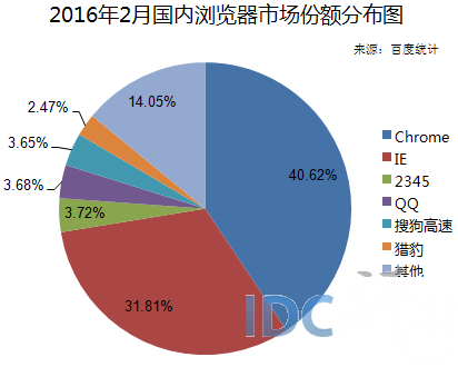 2016年2月国内浏览器市场份额分布图