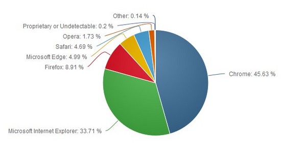 2016年5月全球浏览器市场份额:Chrome继续一路高奏凯歌