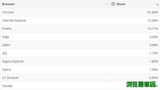 浏览器排行榜2018年4月全球浏览器市场份额排名