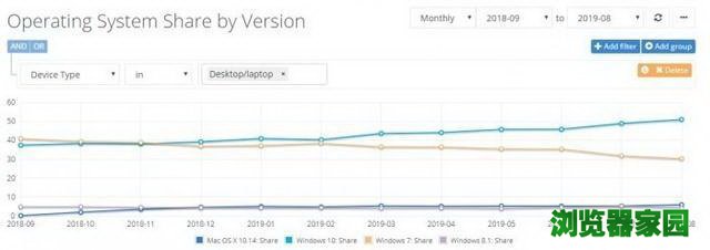 2019年8月浏览器市场份额排名情况是怎样的?Netmarketshare发布的最新2019年8月数据,在桌面操作系统方面,Windows 10系统终于成功占领了超过50%的全球市场份额,Windows 7系统份额降至30.44%。第三位是macOS 10.14系统,市场份额为5.95%。