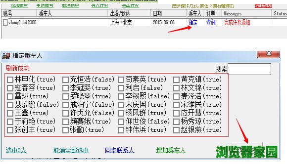 第三步,选择需要购买车票人(在账号后面点击指定)