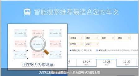 图2:智能搜索自动推荐更多合适的车票,让抢票更灵活、高效