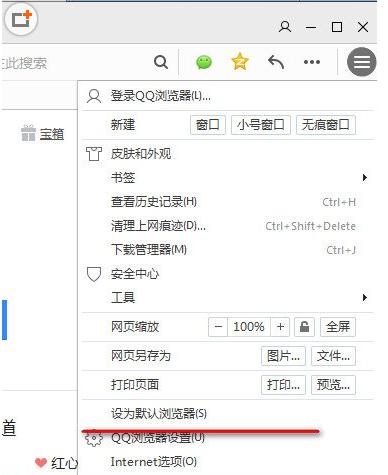 2、在弹出的下拉中就有一个“设置为默认浏览器”。