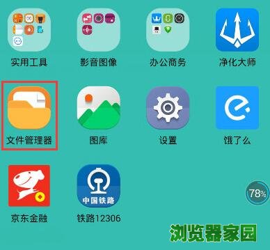 现在的安卓手机,系统一般都会自带文件夹查看工具(如没有,请自行下载),打开“文件管理器”。