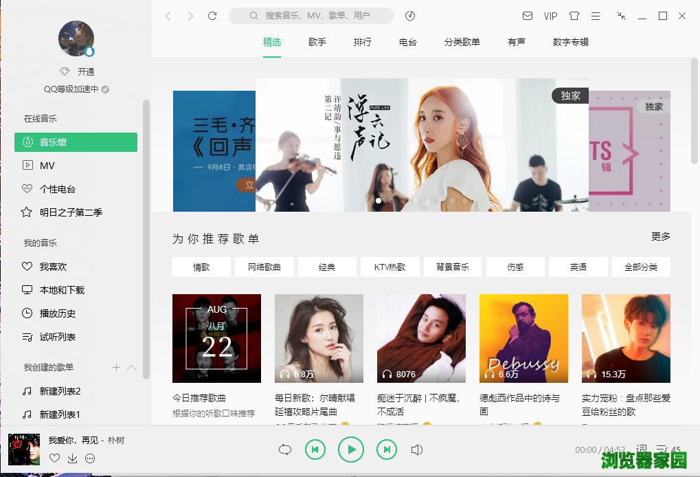 百万量级的正版曲库,行业内领先的播放品质,跟随新潮的音乐,探索自由空间。
