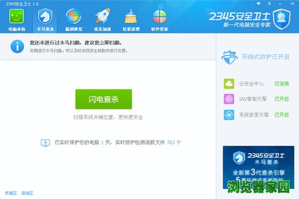 4.支持浏览器防护,智能实时防护IE主页及默认浏览器