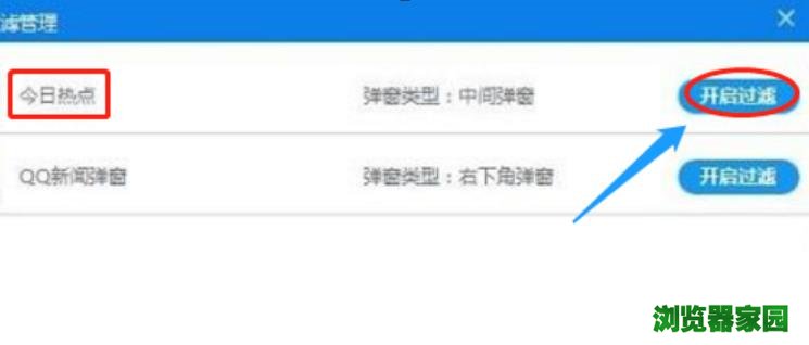 2.第二步,完成上一步后,请大家寻找界面中的“今日热点”这一栏,寻找它后面的“开启过滤”这一项,这样一来,我们便能够关闭暂时性弹窗了。