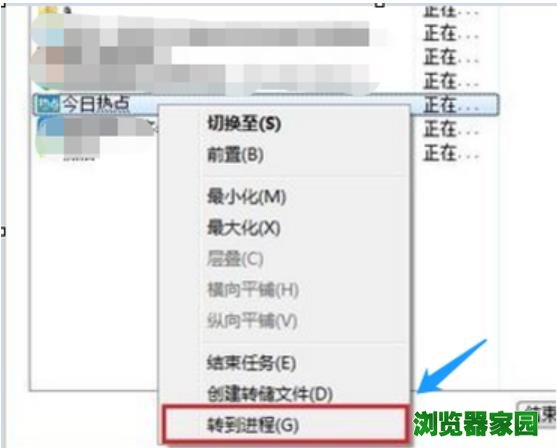 4. 第四步,请大家右击该项,接着点击“转到进程”这一项,我们在新界面中寻找该应用程序的保存路径。