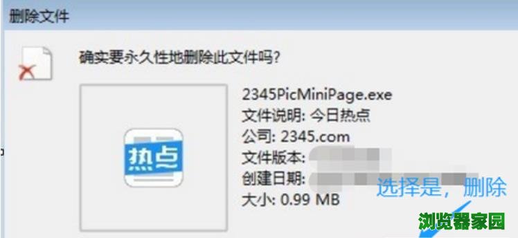 5. 最后,聪明的小伙伴们一定会看到如图的“2345PicMiniPage.exe”安装文件,右击选择其中的“删除”按钮,最后我们只需重新启动电脑即可。